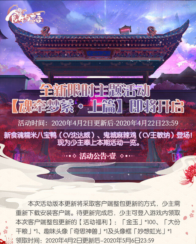 《食物语》全新限时主题活动【魂牵梦萦·上篇】 即将于4月2日更新后开启